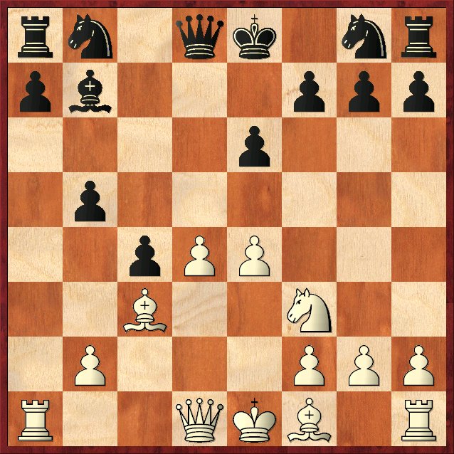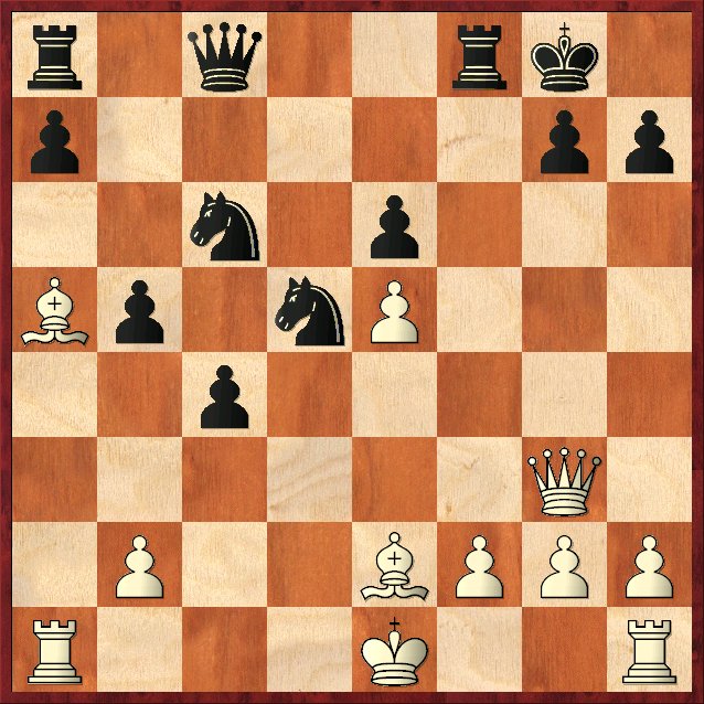 Balans: zwart staat een gezonde pion voor, maar moet uitkijken voor Pf3-d4 en de open d-lijn. De engines geven hier 13. … Pe4 en 13. … Pd5 als beste zetten aan en pas als derde beste zet: