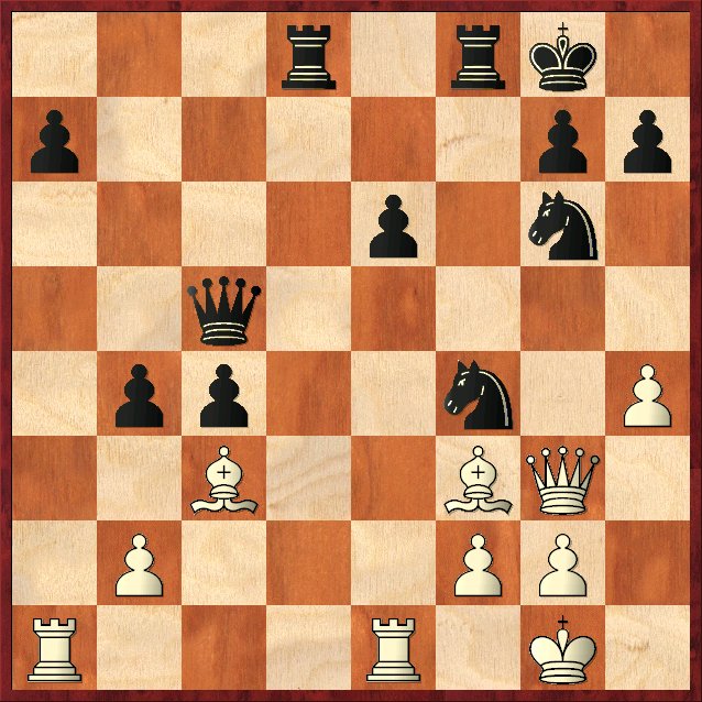 Deze zet houdt het eenvoudig! Wits gevaarlijkste lichte stuk wordt geruild (van de lopers hoeft zwart nog weinig te vrezen) en de d-lijn wordt geblokkeerd.