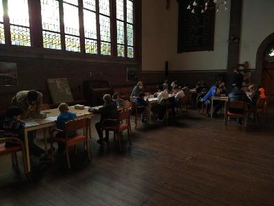 Ook de jeugdleden, er waren er 14 gekomen, kregen voor het eerst in lange tijd weer schaakles. Onder leiding van Timo, Niels, Fabio, Mees, Kris en Ricardo zijn alle kinderen verdeeld in groepjes van vier. Dit was uiteraard mede mogelijk gemaakt door de ouders die hun kinderen van tevoren netjes hadden opgegeven. Het was op deze avond zeker te merken dat iedereen, de kinderen en de leraren, er na een lange tijd weer zin in hadden, wat zorgde voor een vrij kalme en positieve lesavond.