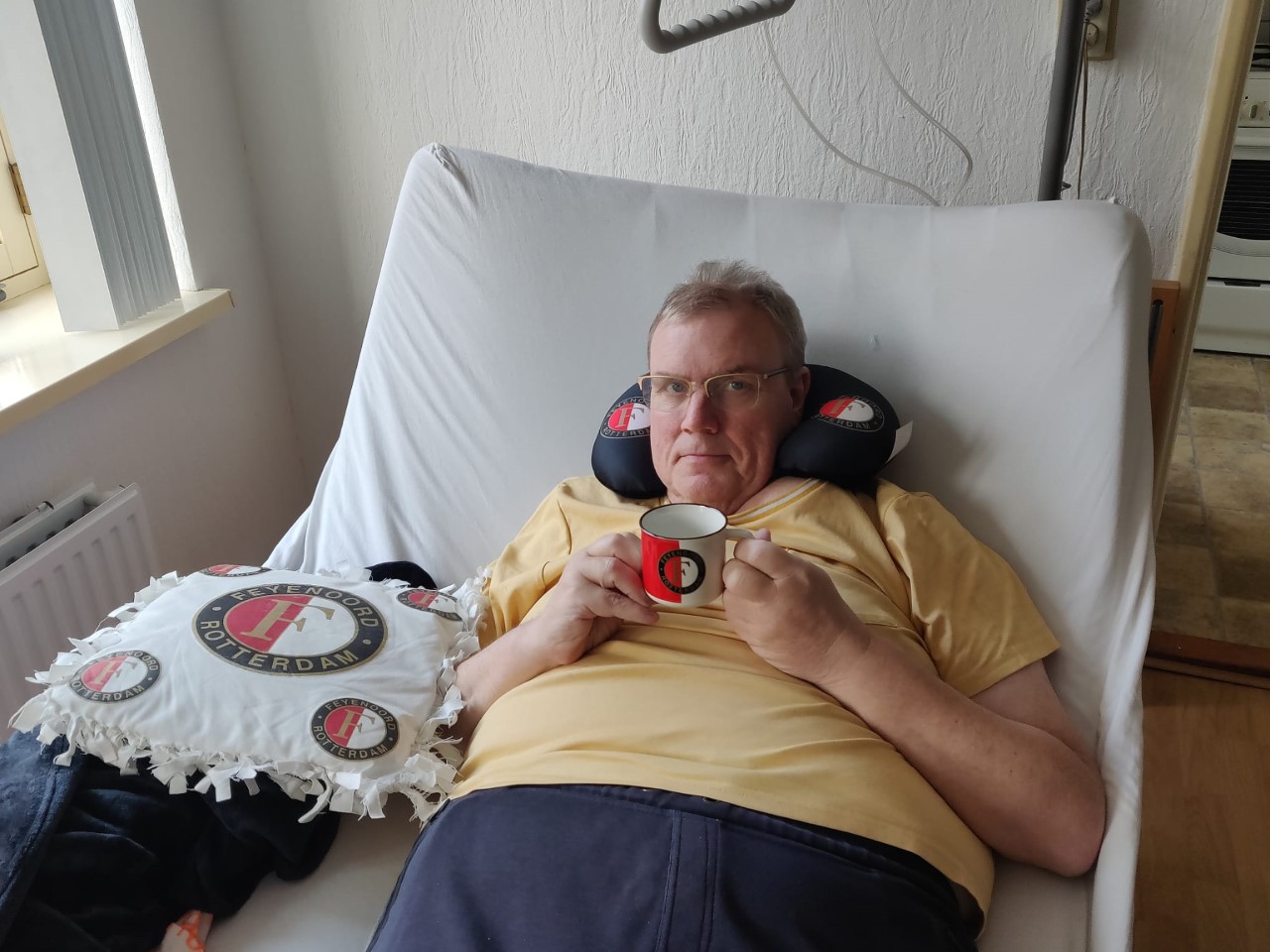 Zijn vriendschappen waren ook voor het leven. Toen Hans een jaar of 16 was begon hij voor de PTT te werken als postbesteller. Uit die tijd heeft hij nog een aantal trouwe vrienden zoals Annelies, Jan en Ed overgehouden. Met Annelies had hij Feyenoord als passie. Jarenlang had hij een seizoenkaart om zijn cluppie te kunnen zien. Wat een feest was dat toen Feyenoord in 2017 kampioen werd. Gezellig met z’n allen naar de Coolsingel. Zijn broer Adri had met zijn echtgenote Els onlangs nog via Stichting Ambulancewens geregeld dat hij nog naar de knotsgekke bekerwedstrijd tegen NEC kon. En wat waren wij afgelopen zaterdag nog blij met de 2-1 tegen AZ. Een laatste overwinning en wellicht een lonkend kampioenschap.