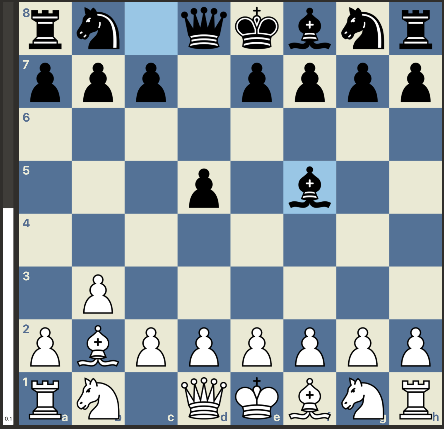 Mario begon tegen Luuk met wit meteen aan een fianchetto te bouwen in plaats van een pion in het centrum te zetten. Dit is de klassieke variant van de Nimzowitsch Larsen aanval: