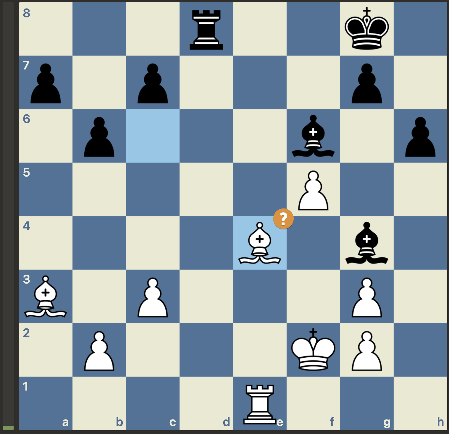 Mats speelt hier het logische e5 en e6 op tempo en wint een volle toren: