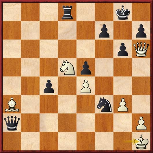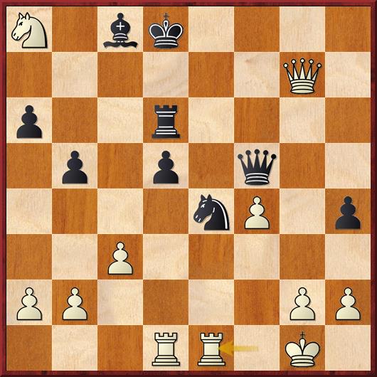 In deze stelling zijn er slechts twee zetten waarmee zwart de winst nog kan binnenhalen. Martin Roobol koos voor het prozaïsche 35… Dxh2+ waarna hij inderdaad gewonnen staat met twee pluspionnen (waaronder de gevaarlijke vrijpion op c4) voor de kleine kwaliteit, al vroeg dit nog enige technische vaardigheid. Maar na het fantastische 35… Pg5!! zou het direct helemaal uit zijn geweest. Deze zet haalt het mat op h7 eruit en na 36.Dxg5 Db1+ 37.Kg2 Dxe4+ 38.Kh3 Dxd5 is het ook duidelijk. 36.Pf6+? Kh8 maakt de zaak alleen maar erger omdat dan ook Td1 mat dreigt.