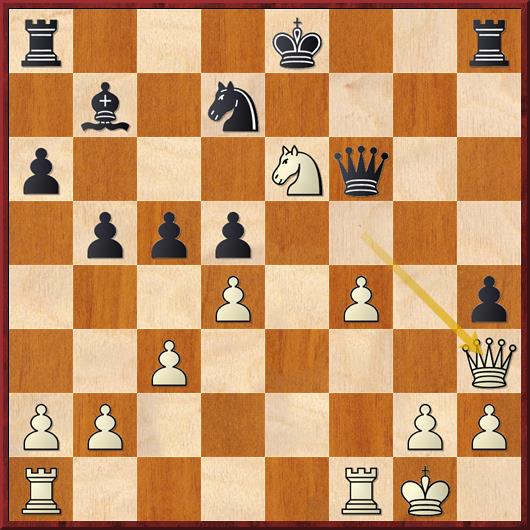 Diagram 2 (na 23.Df5-h3) geeft de essentie weer: wit heeft slechts 2 pionnen voor het geofferde stuk, maar Daan heeft van te voren heel goed ingeschat dat hij winnend voordeel heeft.