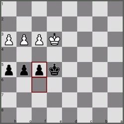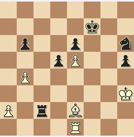 Kris zat aan bord 6 tegen Hans van Nieuwhuizen. Hij stond lange tijd iets beter, maar Hans steeds goed terug en het leuk uit te draaien op een bloedeloze remise. Toen deed Hans het echter verkeerd in een klassiek eindspel, waar Kris dankbaar gebruik van maakte! Zie ook hieronder. Welke zet mag wit absoluut niet spelen? Antwoorden naar Kris! 3,5-2,5